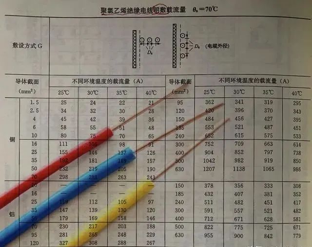 上圖是聚氯乙烯絕緣電線 明線安裝載流量(數(shù)據(jù)來源于《供配電設(shè)計手冊》)